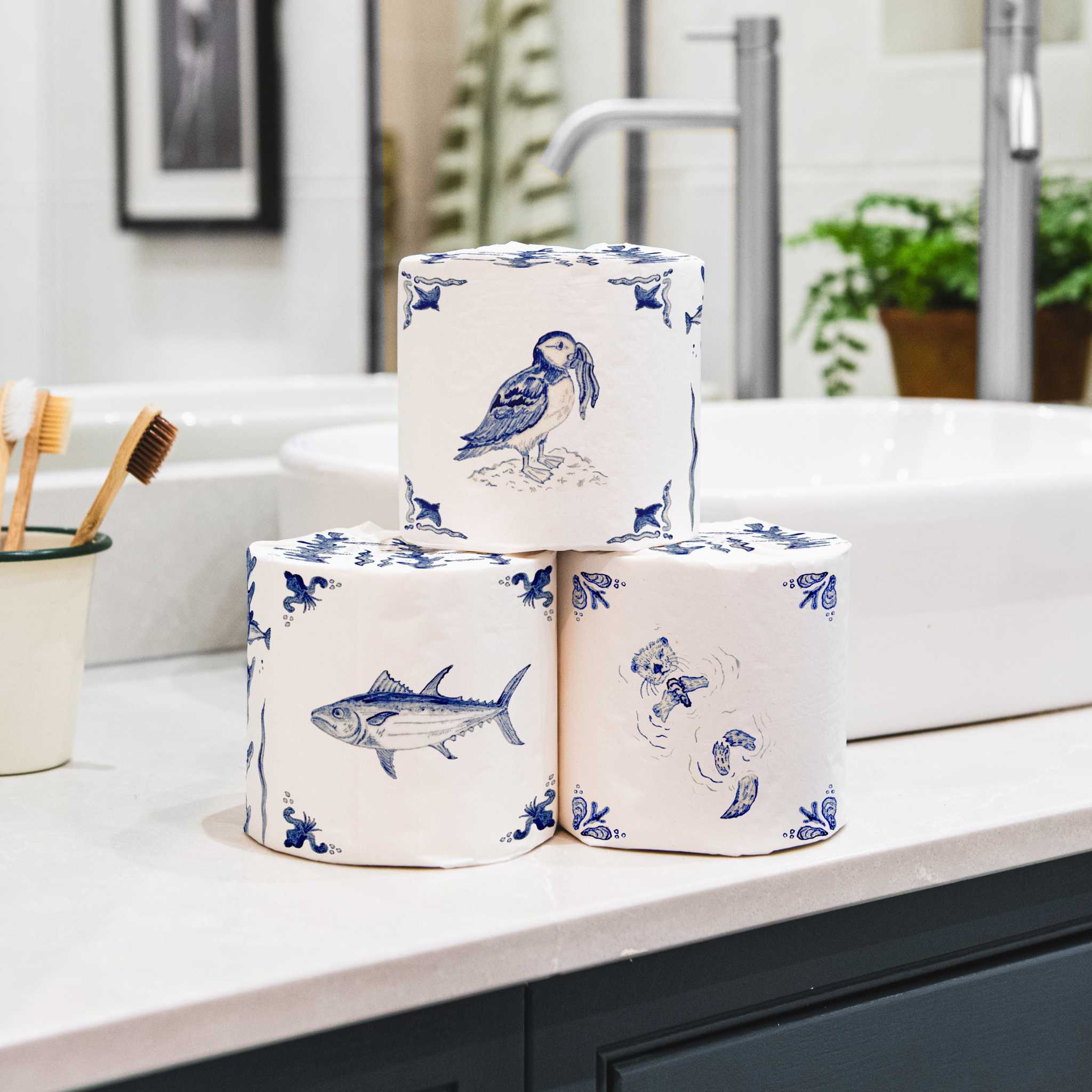 It’s not every day that sea creatures, centuries-old ceramics, and toilet paper come together- but somehow, in Laura’s hands, it just works. Her English Delft designs invite a little wonder into the everyday, offering a quiet reminder that beauty, playfulness, and purpose can live in the most unexpected places.